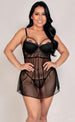 Este babydoll ultrafemenino y atrevido combina copas de encaje floral de gran detalle con un cuerpo de malla transparente y fluida. El diseño presenta un escote en V con un detalle de lazo central y un corte en A que ofrece una sensación de ligereza sedosa y un movimiento sensual. Es una prenda que maximiza la figura con suavidad, ideal para una experiencia íntima y sofisticada.